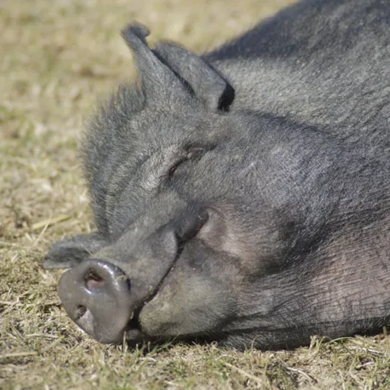 Bernadette, cochon nain sauvée en 2016 par GroinGroin, vivait enfermée et en surpoids après avoir été ballottée de foyer en foyer.