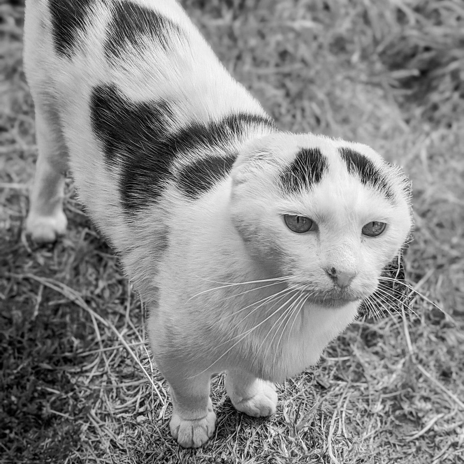 Né vers 2012, Snow est arrivé au refuge SOS Chats en 2020, après une grave attaque de chien en Espagne qui lui a arraché une oreille et causé une paralysie faciale partielle.
