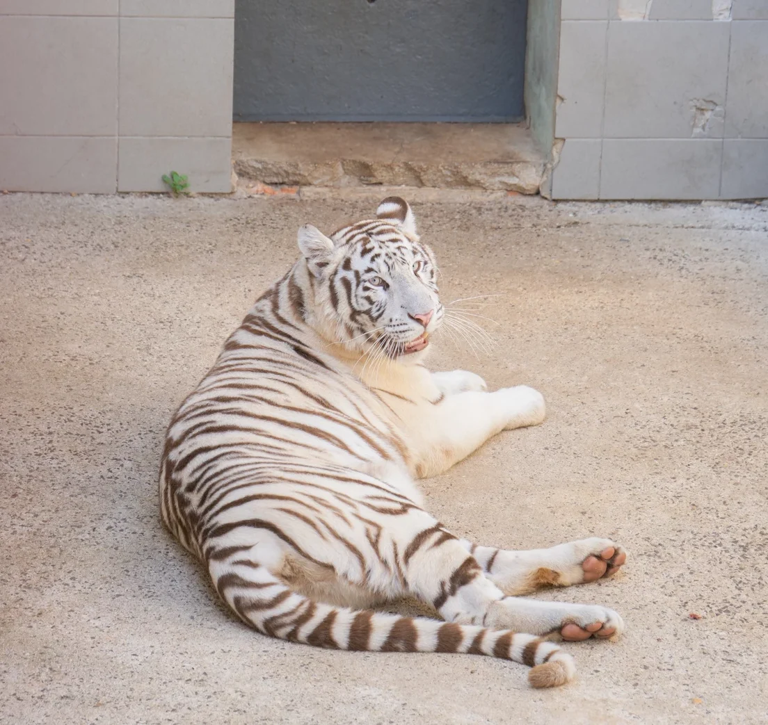 Roméo, lion blanc né en 2019, a été sauvé d’un cirque français en 2023, où il vivait enfermé dans des conditions misérables.