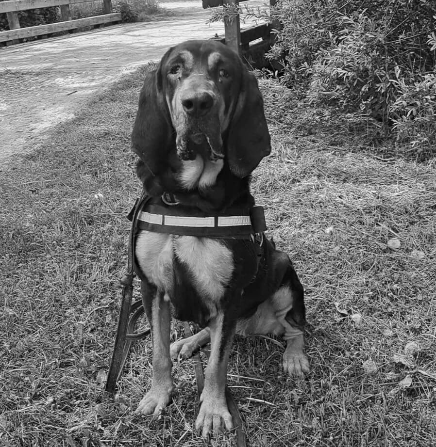 Skäl est une Saint-Hubert de 5 ans arrivée à l’AJPA suite à une séparation familiale.