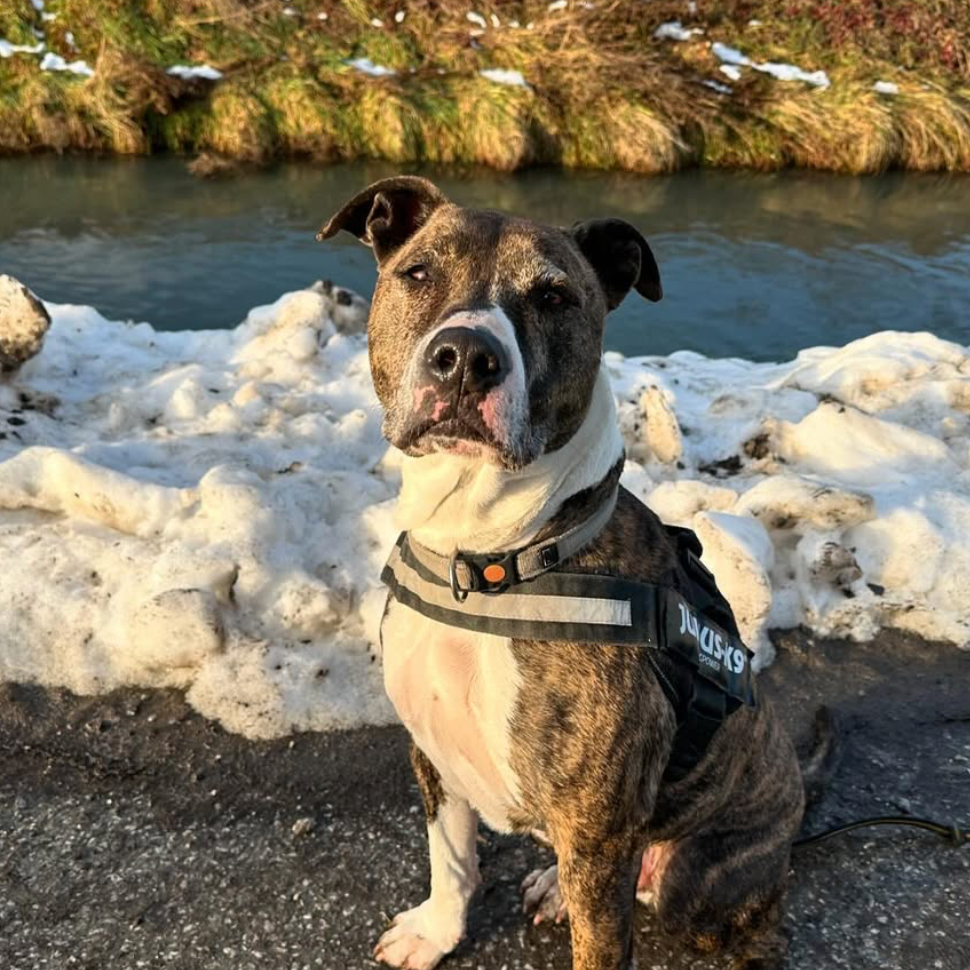 Né en 2017, Biggie est arrivé à la SPA Valais en 2023, en raison de l’interdiction de sa race dans le canton. En octobre 2024, Biggie a trouvé sa famille pour la vie.