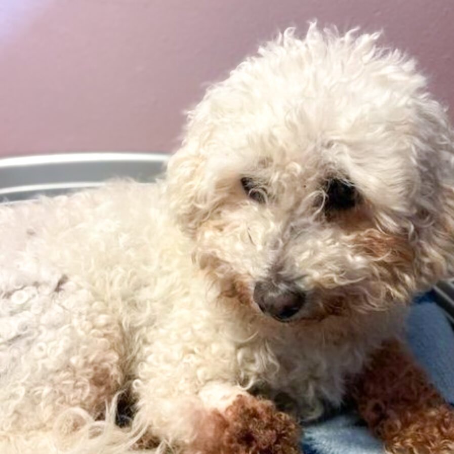 Bichon frisée née en 2011, Yuna a rejoint l’Oasis des Vétérans avec ses compagnons en 2024.