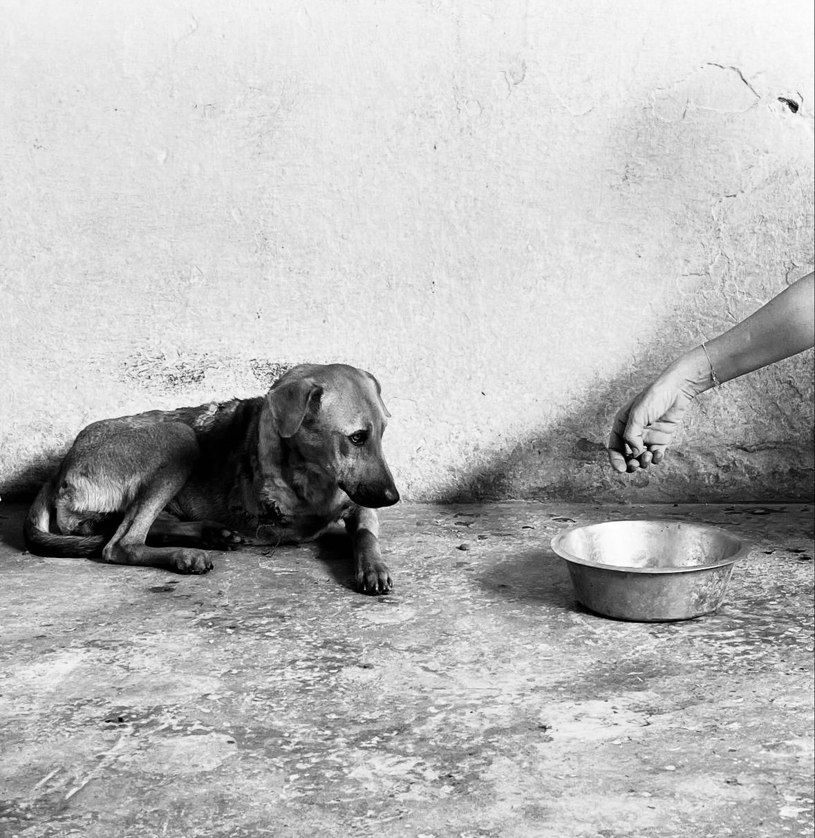 Marween a été trouvée par un jeune homme dans rue, accidentée. Elle a dû être amputée d’urgence.