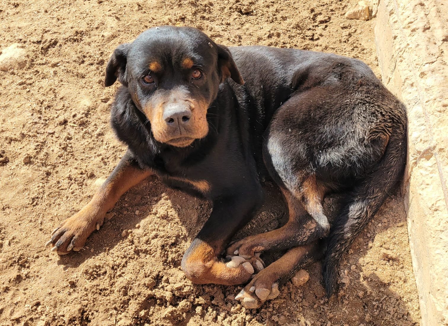 Flokie avait été abandonnée avec son frère Moustik et deux compagnons dans une villa désertée. Livrés à eux-mêmes sans nourriture ni abri, ils ont été sauvés grâce à l’alerte donnée par les voisins au refuge de l’UMPA.