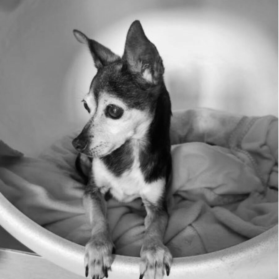 Chihuahua né en 2010, Guizmo a longtemps vécu à l’Oasis après un passé en élevage intensif.