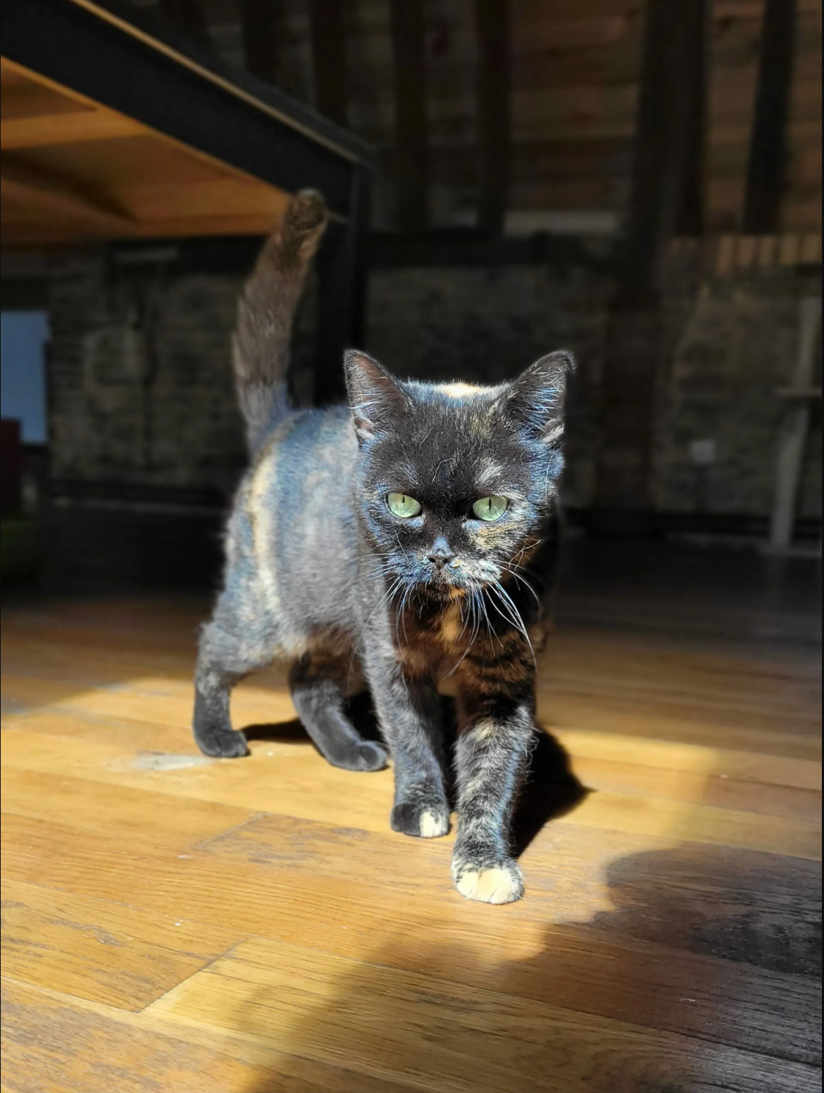 Trouvée devant le refuge en octobre 2024 à seulement un mois, BB Pruneau cherche aujourd’hui une famille aimante pour la vie.