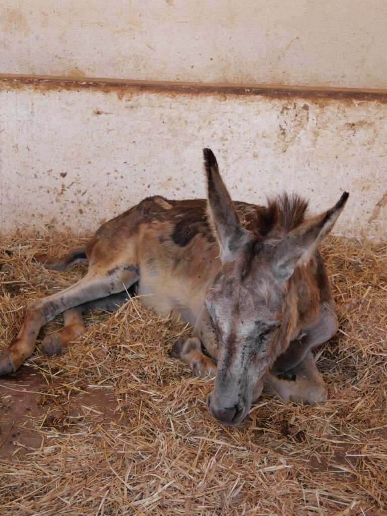Aujourd’hui, c’est un tout autre âne que nous retrouvons. Debout, plus alerte, il a repris du poids, de l’énergie et, surtout… cette lumière dans le regard qui avait disparu. Sa transformation est si spectaculaire qu’il est difficile d’imaginer qu’il s’agit du même être.